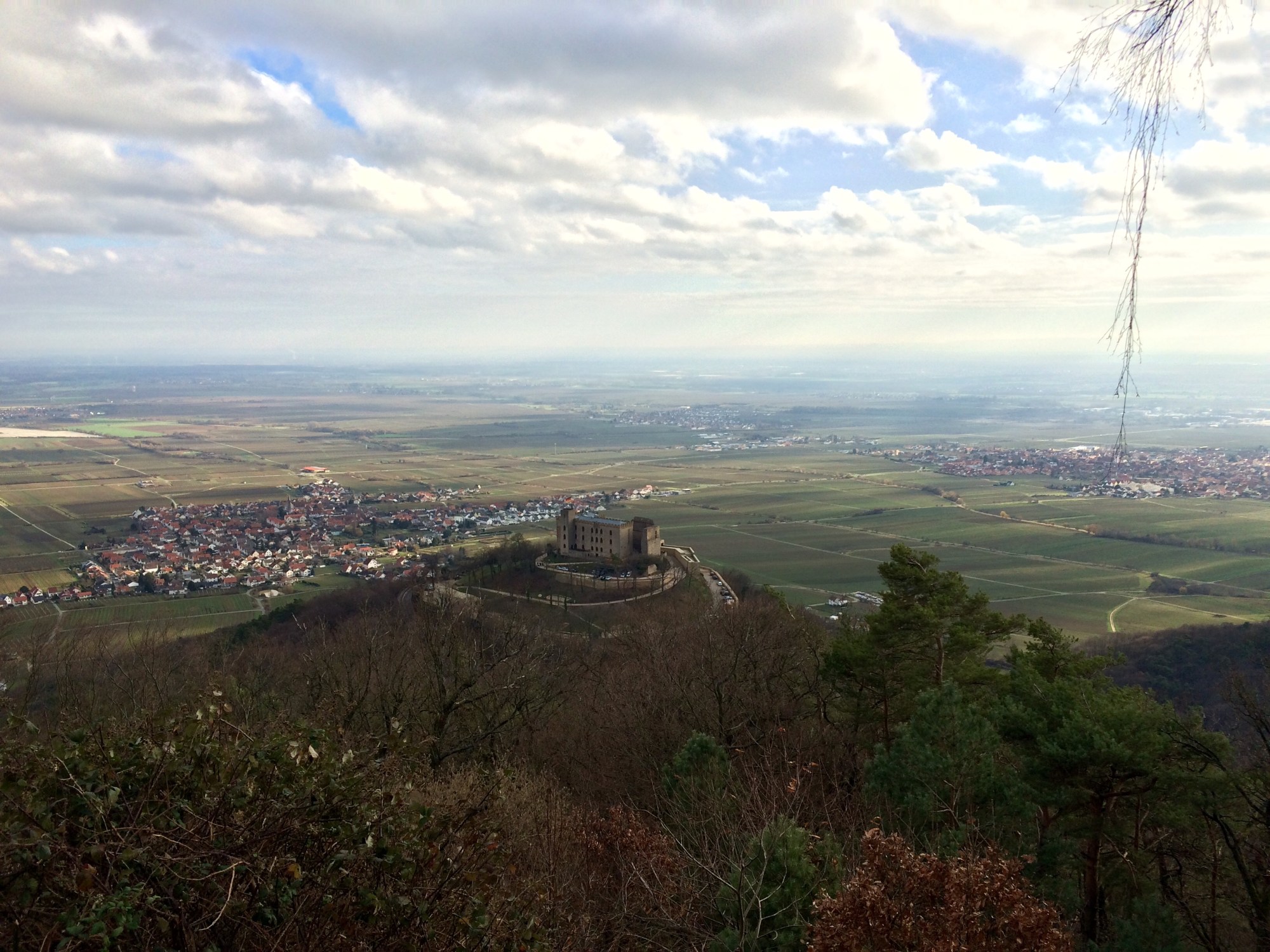 Von hier oben, dem höchsten Punkt der Runde hat man einen tollen Ausblick auf die Maxburg, wie das Hambacher Schloß bei den Einheimischen heißt.